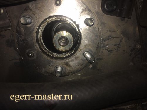 Как оказалось для замены подшипника совсем не нужно снимать приводной вал, достаточно снять опорную крышку, выкрутить два винта с помощью торкса Т20 и сбить подшипник с вала.